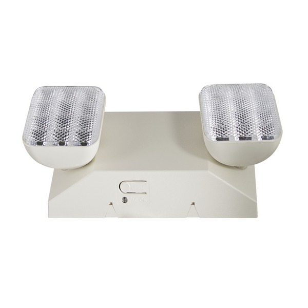 - Twin Head Square LED lamp heads — 160 lumens, 6500K, CRI greater than 80 for clear, bright emergency illumination.